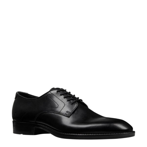 These dress shoes feature a hand-finished leather upper, non-leather lining and a flexible T.P.R sole with a leather veneer heel. The soft almond toe and five-hole lace-up derby design offer a sleek, modern look. With a 30 mm heel height, these shoes are perfect for any formal occasion.