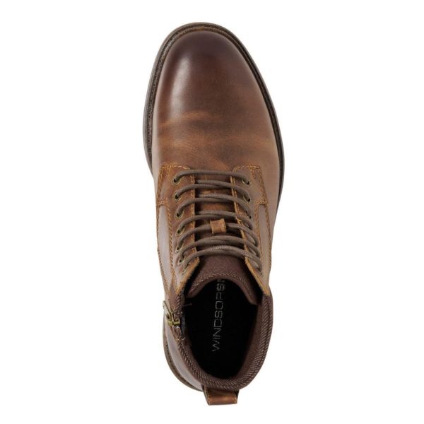 Beau, men’s casual boots in distressed brown leather, men’s lace-up boots featuring seven eyelets. Experience enhanced comfort with a padded material collar and easy slip-on access through the inside zip.