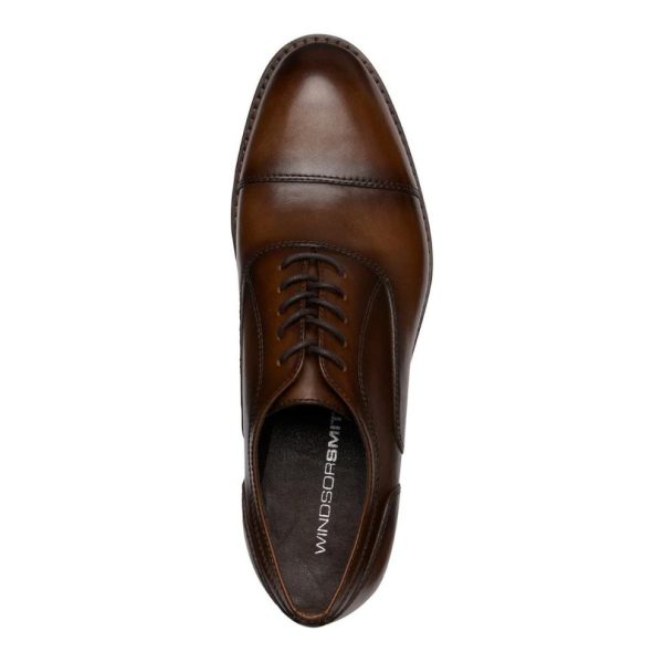 These Oxford style brown leather shoes features a refined toecap design, almond toe shape and a five-eyelet facing, embodying a timeless and classic style. . Handcrafted with meticulous care, the resin rubber sole boasts an extended welt for both durability and style.