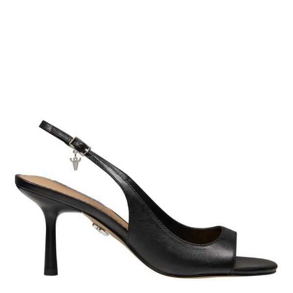 Step into style with Hibiscus by Windsorsmith! These black slingback heels feature a kid leather upper, non-leather lining, and non-leather sole. With an open toe and a chic 75 mm stiletto mid heel, they’re perfect for any occasion.