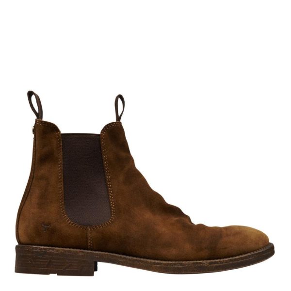 Jace tan Suede boots, by Windsorsmith. The quintessential choice in men’s Chelsea boots. These men’s boots are made in a distressed washed finish cow suede upper, delivering a worn and vintage appearance. Ideal for casual wear. The vintage-inspired sole adds to its charm, completing the look with a rugged casual Chelsea boot feel.