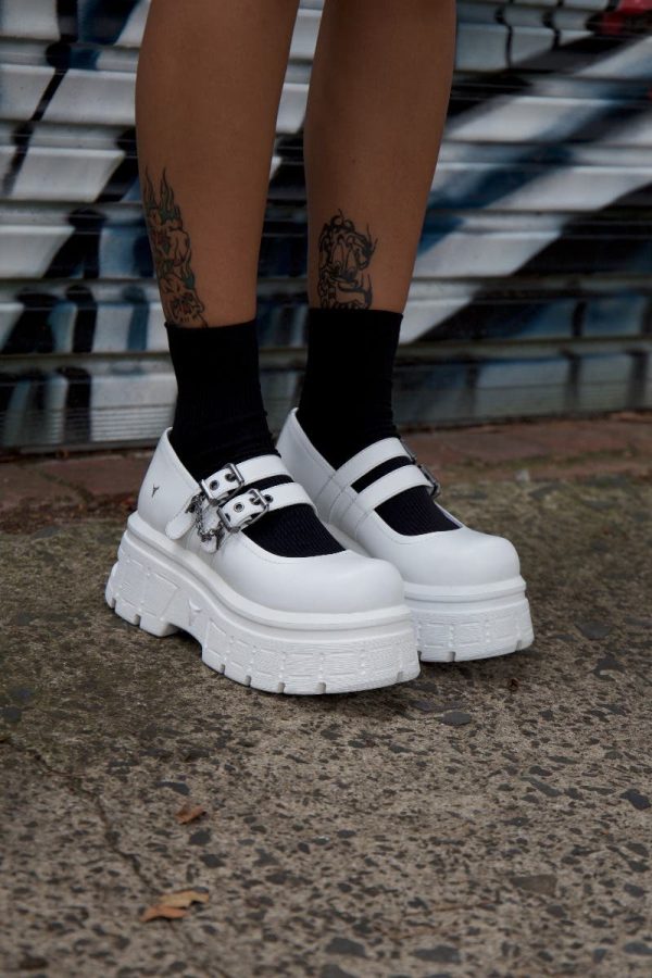 Scary White Leather Platform Shoes | Women Windsor Smith Platforms
