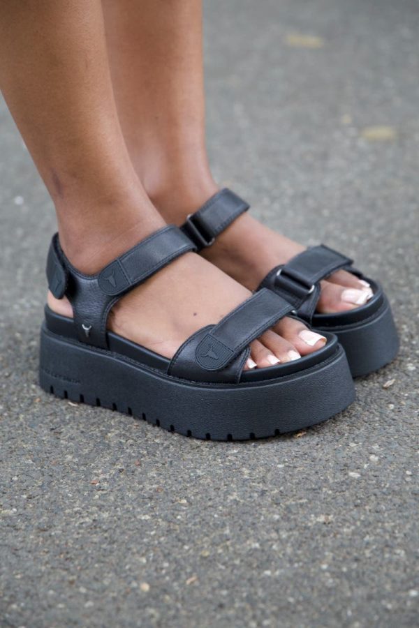 Thankful Black Leather Wedges | Women Windsor Smith Wedges