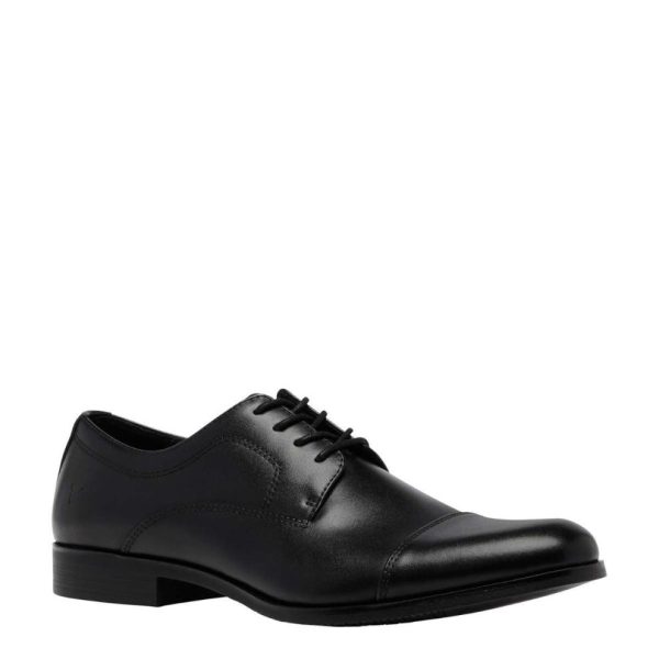 Derby toe cap leather Dress shoe with side stitching detail on side. Four eyelet facing lace up. HI – shine dress look finish on upper. Almond toe shape.